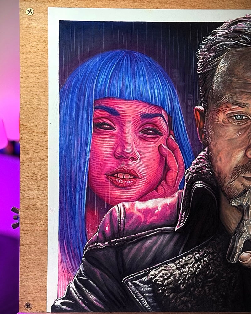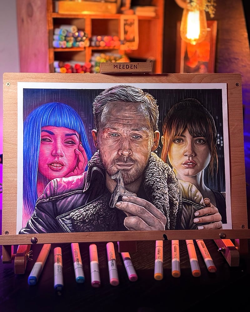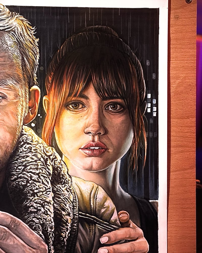 This Blade runner 2049 piece captures the central existential struggle of Agent K and the tension between artificiality and authenticity, control and autonomy. Agent K’s gaze, fixated on the wooden horse, conveys a deep longing for meaning beyond the constraints of his programmed existence.