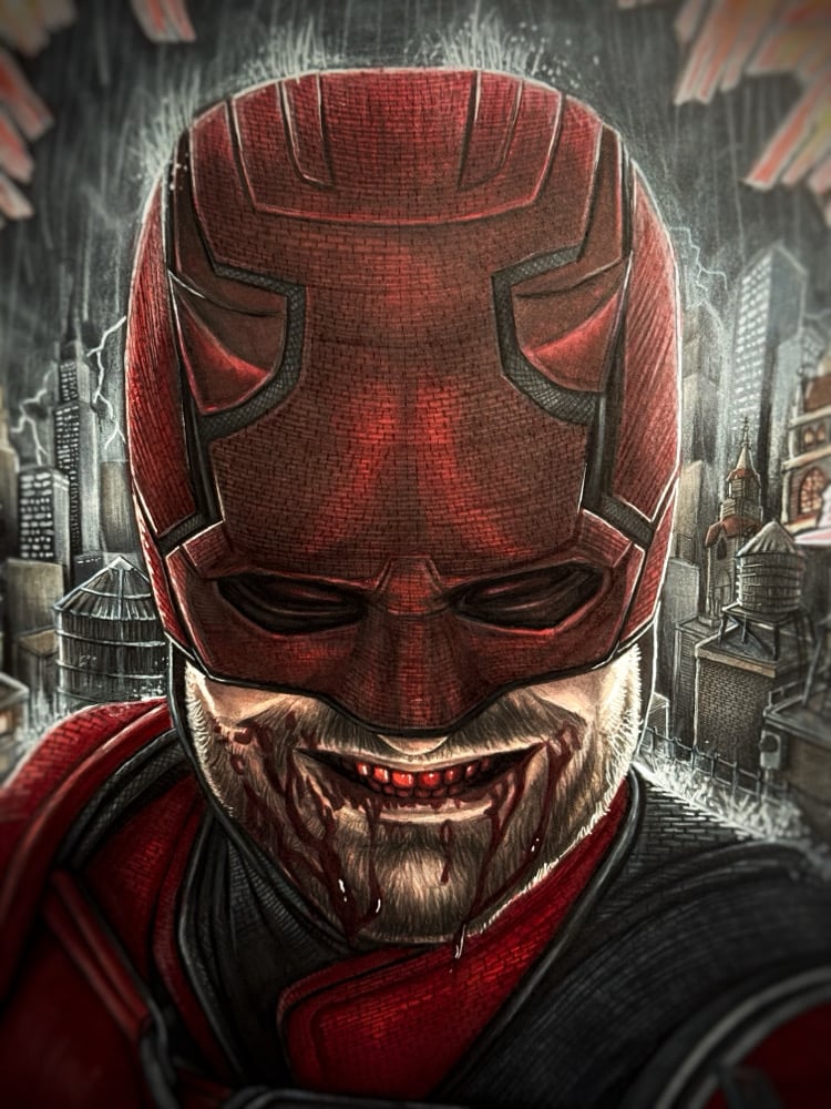 This artwork is my tribute to Daredevil. Not the flawless hero, but the man who stumbles through darkness, scarred and imperfect, still choosing to fight.