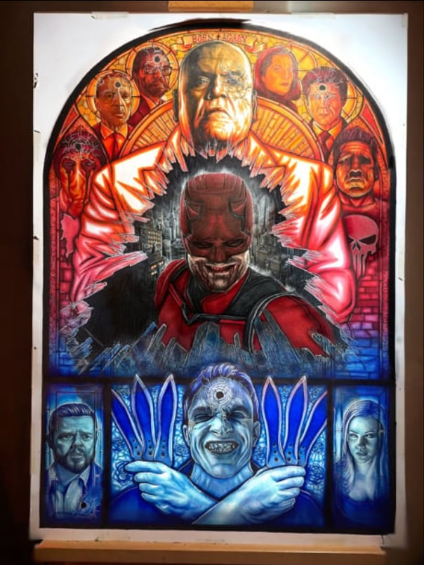 This piece depicts more then Daredevils story but carrying faith in the unseen, about believing that even the ragged threads of our lives are part of a greater design.
