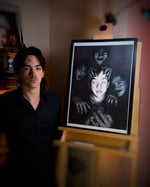 This piece titled silhouette illustrates the way mindless consumption of technology more specifically the comparisons made when indulging in social media drains your soul and mind. The addicting light projected from the iPhone casts a thick shadow revealing the common internal struggles that take control over our minds when consuming digital media.