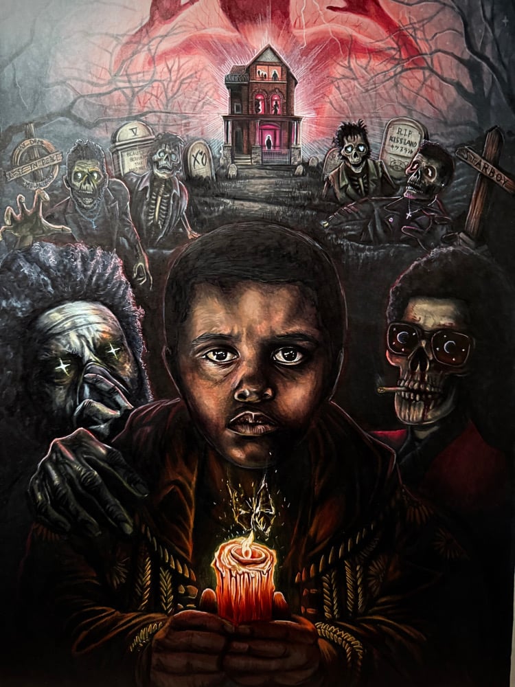 This isn’t just a drawing. It’s The Weeknd’s entire life story from heartbreak to healing. Little Abel can be seen Lost in the abyss, a dark manifestation of his past with only a flickering candlelight to guide his path forward.